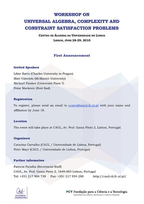 Workshop on Universal Algebra, Complexity and CSP